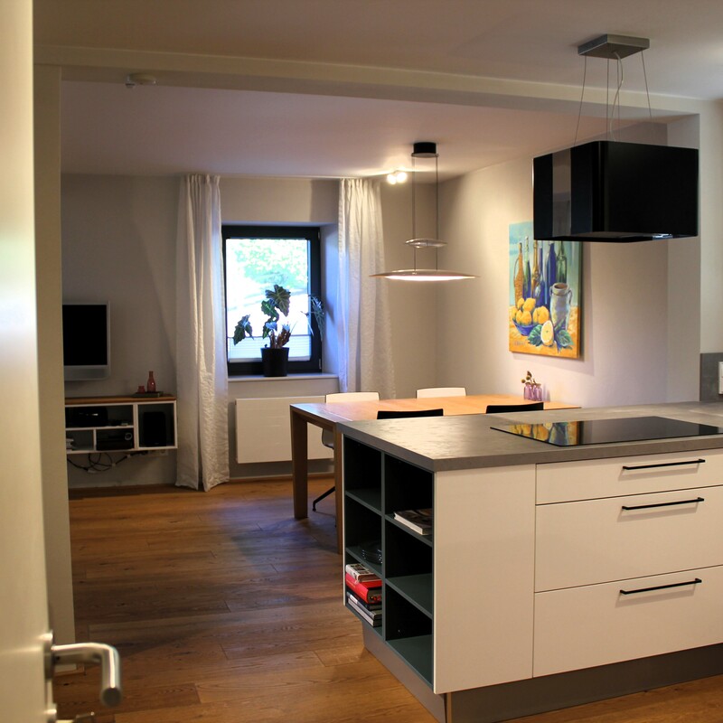 Unsere moderne Ferienwohnung befindet sich im Erdgeschoss eines 2-Familienhauses, in einer sehr ruhigen Sackgasse, Hanglage direkt am Waldrand, nur wenige Minuten zu Fuß vom alten Steinbruch entfernt. Die offene Grundrissgestaltung und hochwertige Ausstattung bietet 2 Personen auf ca. 63 m² Wohnfläche eine hohe Aufenthaltsqualität. Wenige Treppenstufen führen vom Hof in den Garten. Die überdachte Terrasse mit Blick auf den Garten und Wald lädt zum Verweilen ein. Im Hof besteht die Möglichkeit Fahrräder sicher und trocken abzustellen. Macht euch einfach selbst ein Bild!